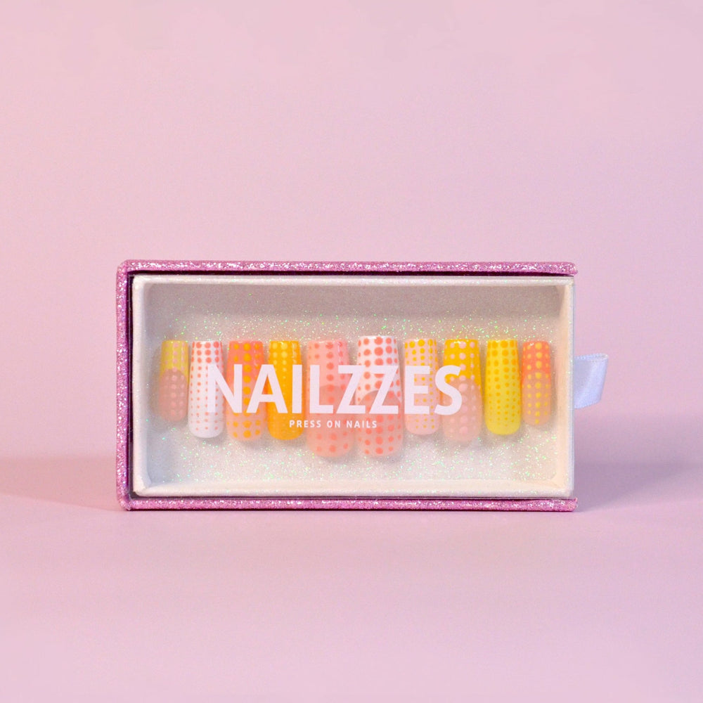 Když Kylie Jenner na svých sociálních sítích poprvé uveřejnila tento styl nehtů, každý tušil, že tady s námi chvíli vydrží. Elegantní, ale přitom zářivě barevný design, který doplní dlouhé slunečné dny s drinkem v ruce. Díky technice press-on si je můžeš užít, ať už na jednorázovou událost nebo i během celých dvou týdnů. Stačí si vybrat délku!