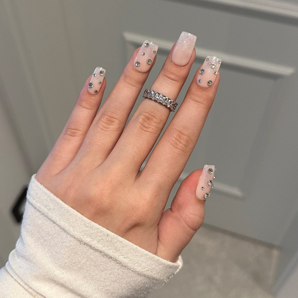 Press-On Nehty Fantasy sou třpytivým ombré designem doplněným o kamínky. Jsou tak magické přesně podle tvé nejtajnější fantazie a stávají se neodolatelně třpytivým kouskem, který si prostě zamiluješ. Díky technice press-on si nehty můžeš nalepit, ať už na jednorázovou událost nebo i na celé dva týdny. Stačí si vybrat délku a tvar!