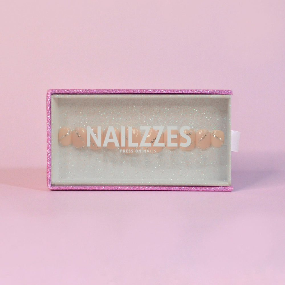 Nalepovací nehty Glitter Swirl jsou skvělým elegantním oživením tradičních nude nehtů. Jemná glittrová linka dodá záři každé ruce. Tyto nehty jsou vhodné i pro nevěsty či pro speciální formální eventy. Díky technice press-on si nehty můžeš nalepit, ať už na jednorázovou událost nebo i na celé dva týdny. Stačí si vybrat délku!