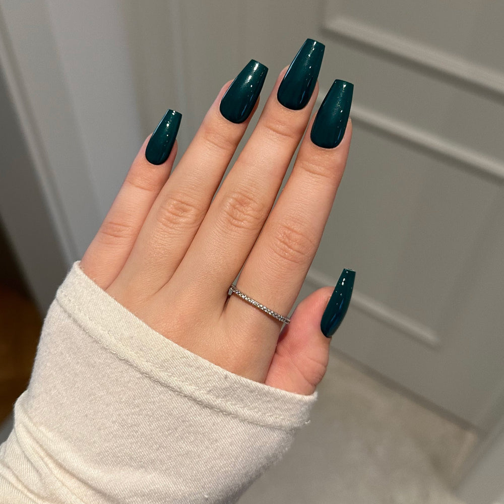 Press-on nehty Under the Tree jsou nádherné jednobarevné zelené nehty. Tento krásný vánoční odstín je skvělý na celé zimní období, ale dá se také využít po celý rok díky své decentnosti.