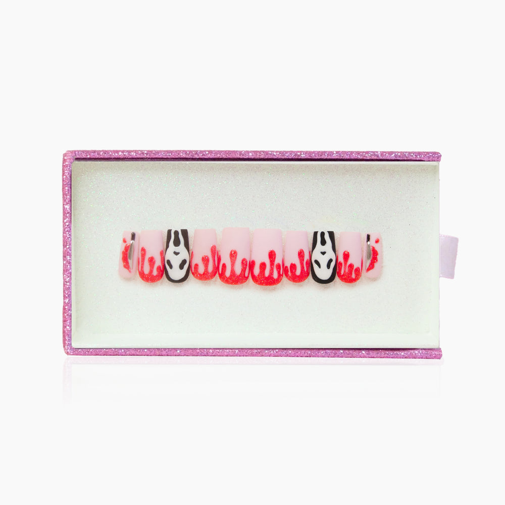 Nalepovací nehty Scream jsou nehty inspirované filmem Vřískot. V tomto skvělém provedení mají své strašidelné kouzlo, ale také dávku ženskosti. Ideální na halloweenskou párty či na celé spooky období.