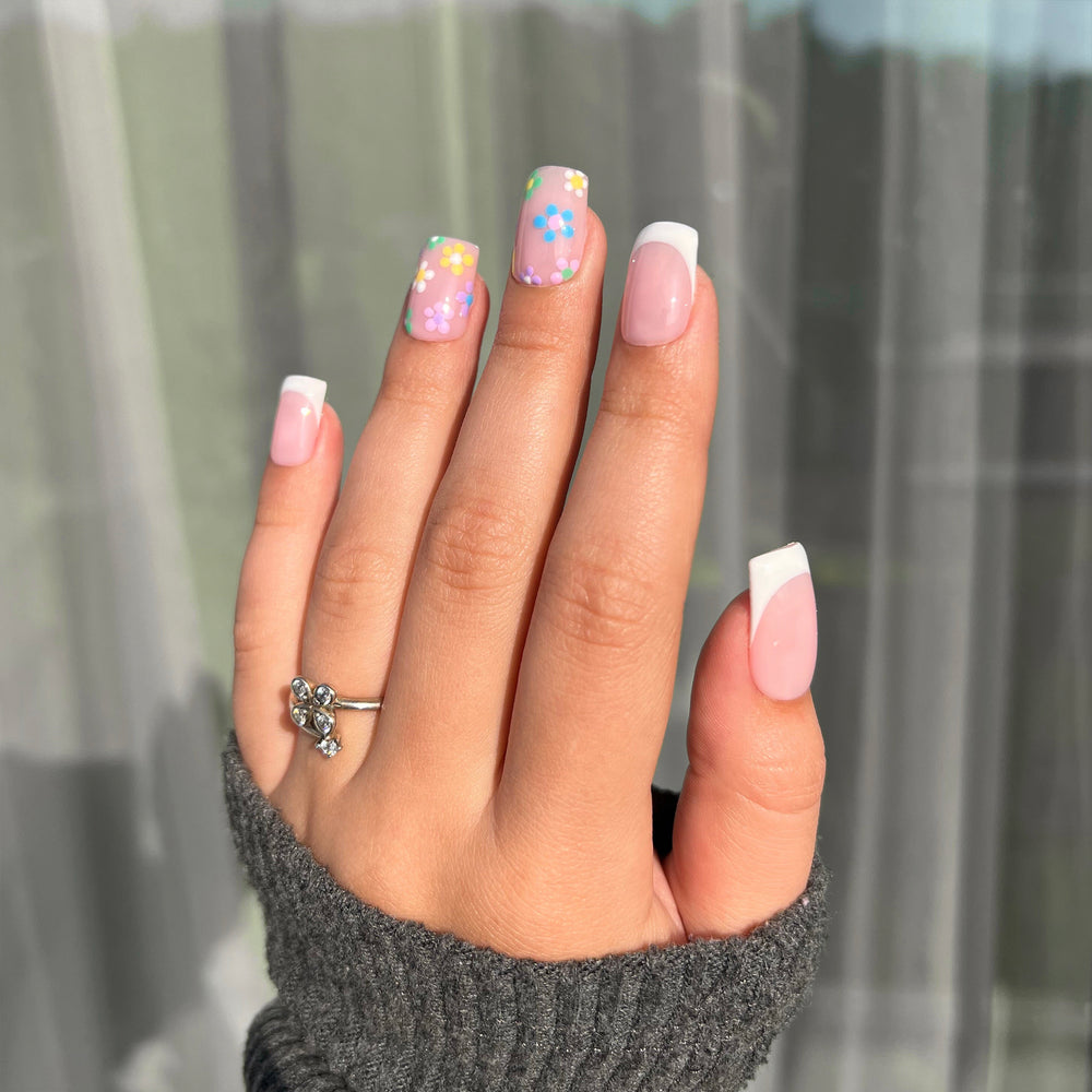Nadčasová francouzská manikúra s nádechem začínajícího jara