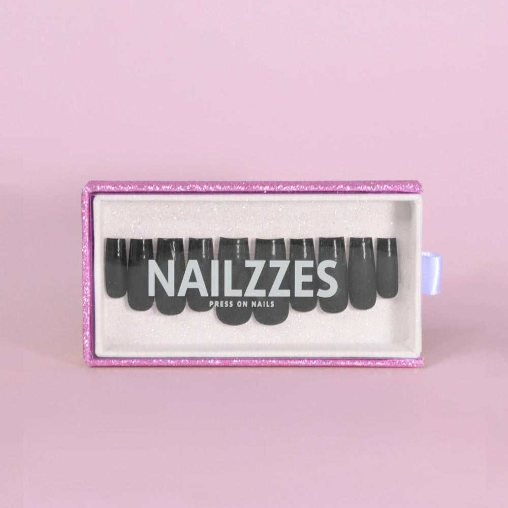 Nalepovací nehty Velvet Caviar, dodávají díky své kombinaci matnosti a lesku, dokonalý luxusní nádech každé své nositelce! Unikátní design ve stylu francouzské manikúry, ideálně pozvedne tvou potřebu černých nehtů. Díky technice press-on si nalepovací nehty můžeš užít, ať už na jednorázovou událost nebo i během celých dvou týdnů. Stačí si vybrat délku!