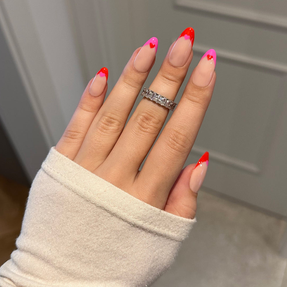 Nalepovací nehty Your Valentine jsou krásný valentýnský design v neodolatelné kombinaci červené a růžové. Francouzská špička doplněná o mini srdíčko je přesně to co potřebuješ. Tento design hravě využiješ i během roku.