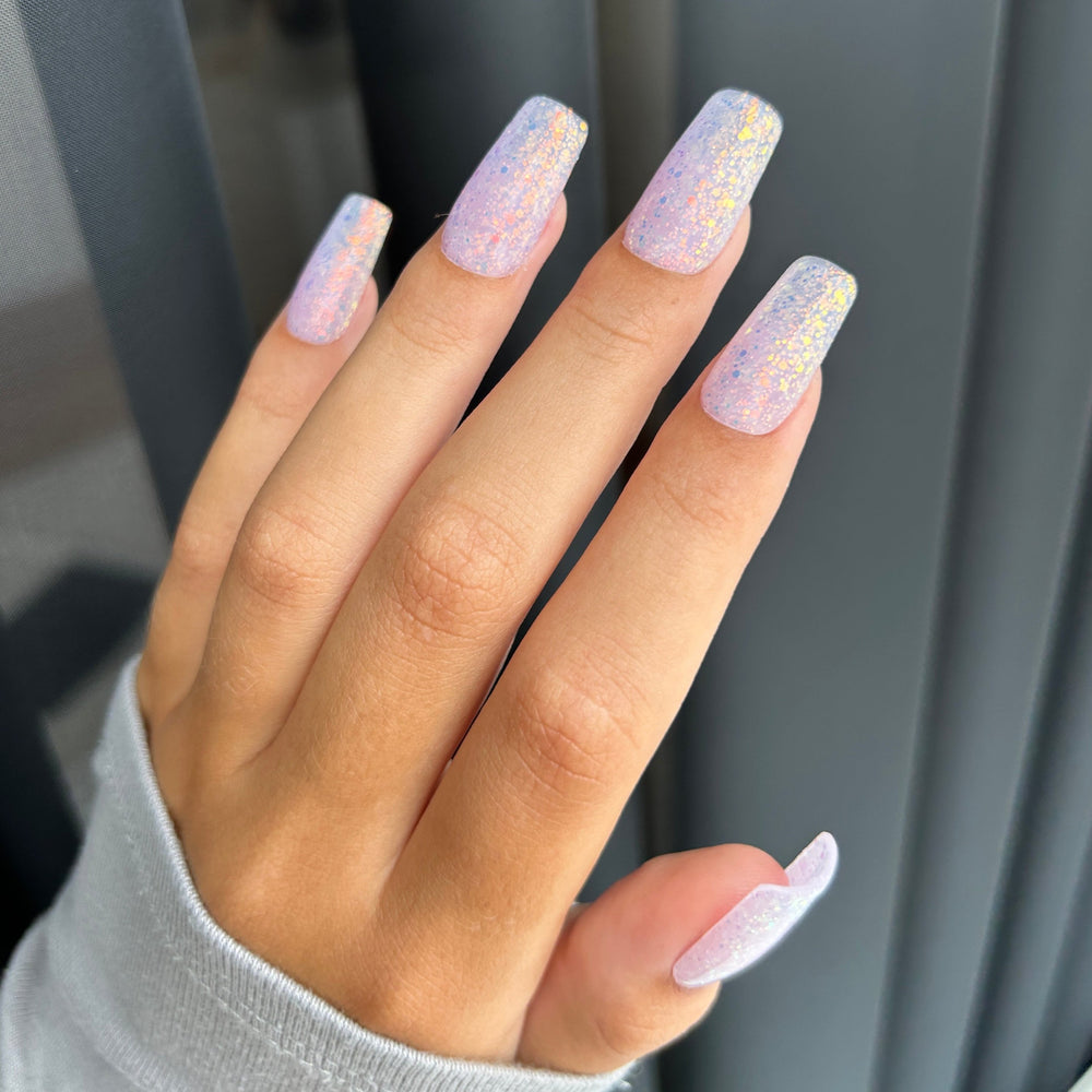 - Ze zadní strany press-on nehtu už jen stačí odstranit zbytky lepicích pásek.